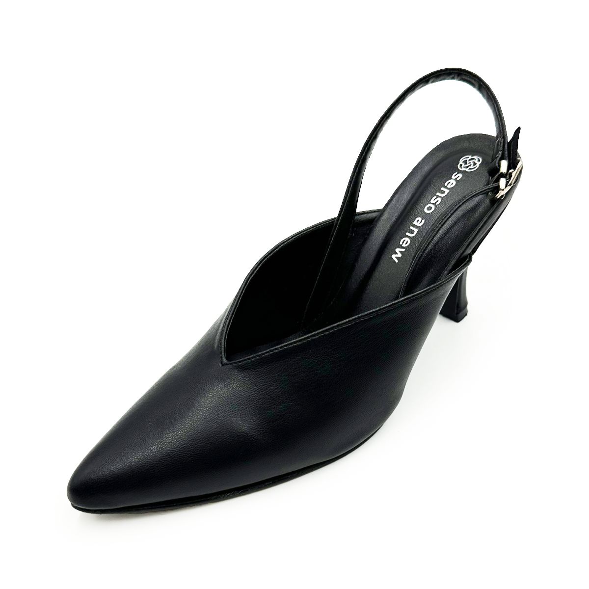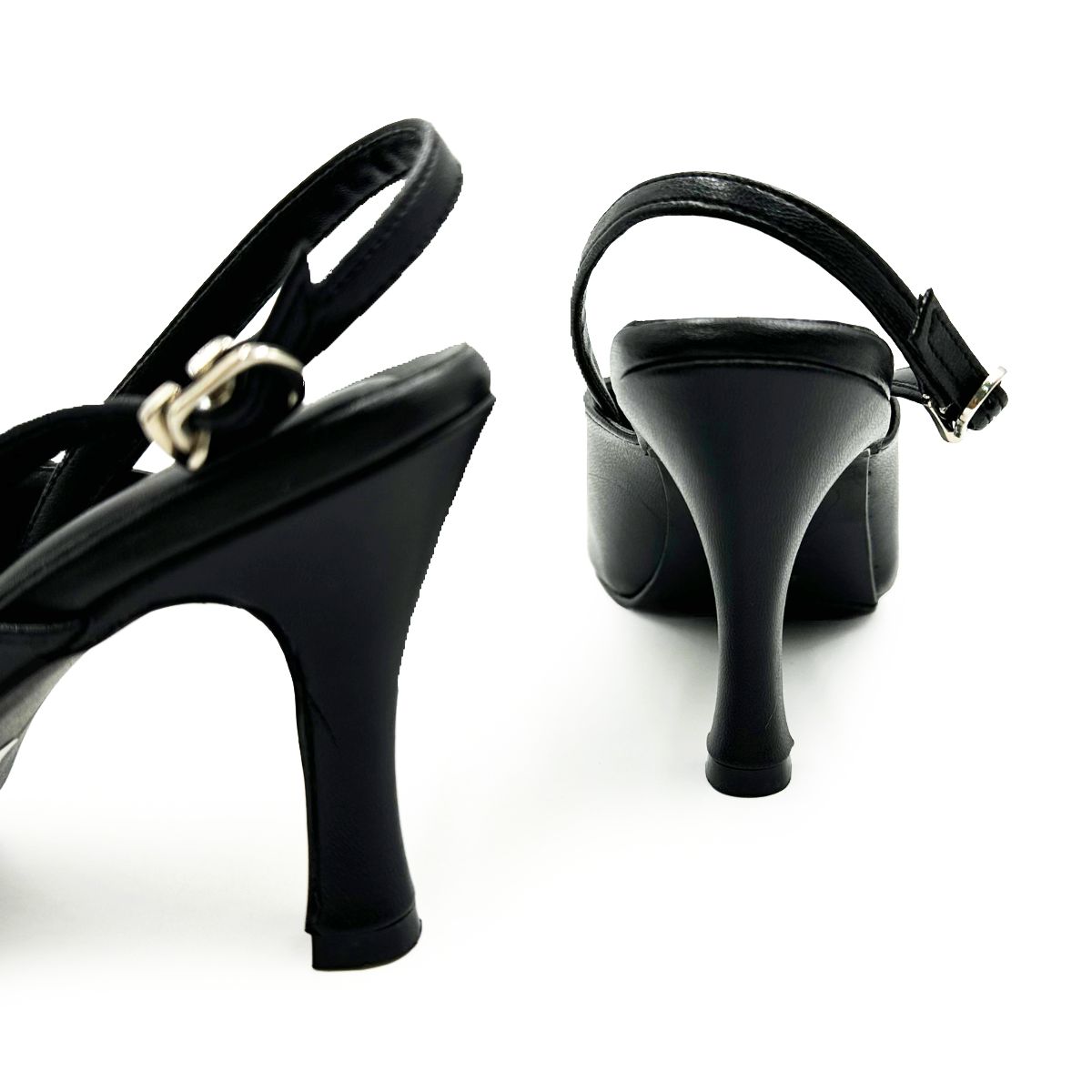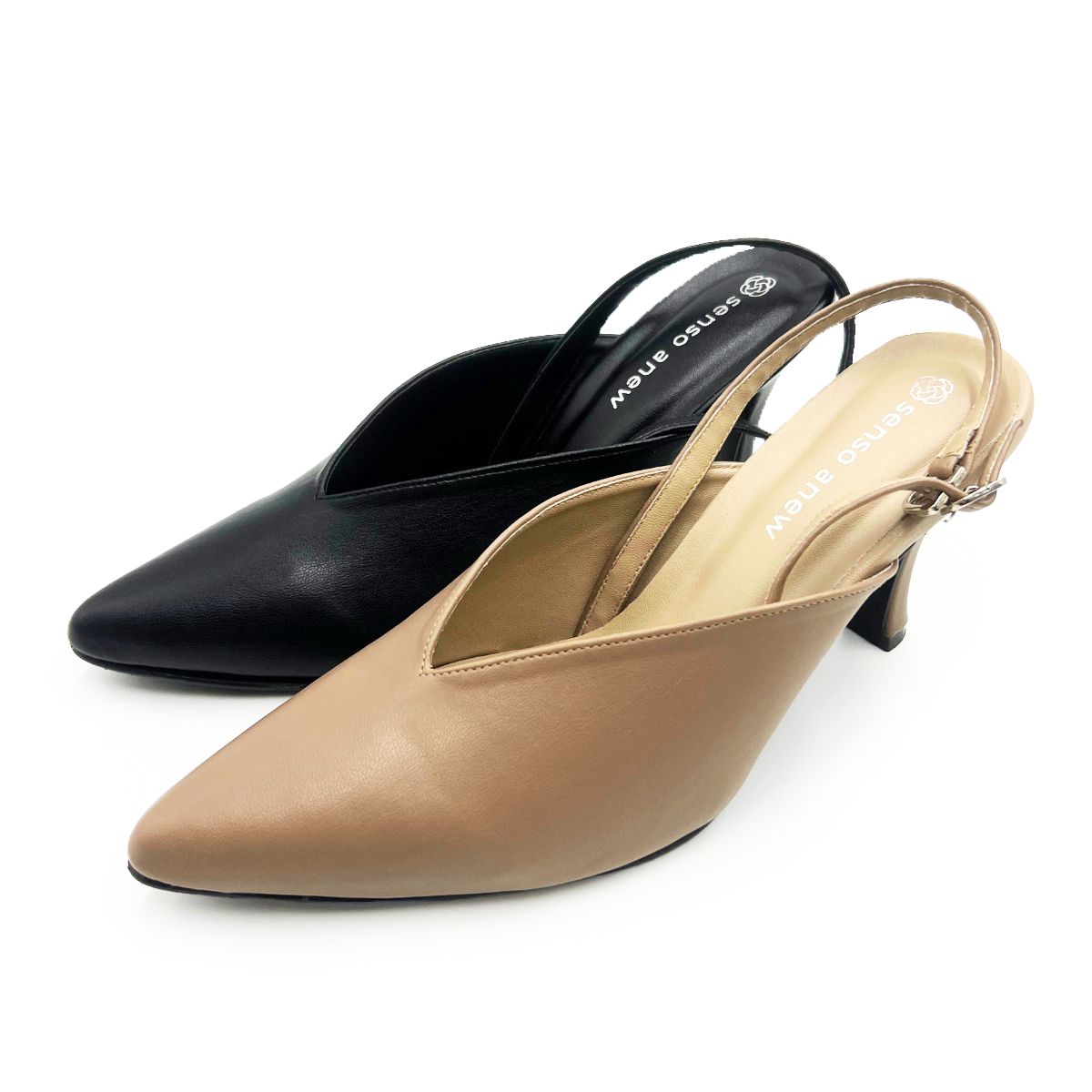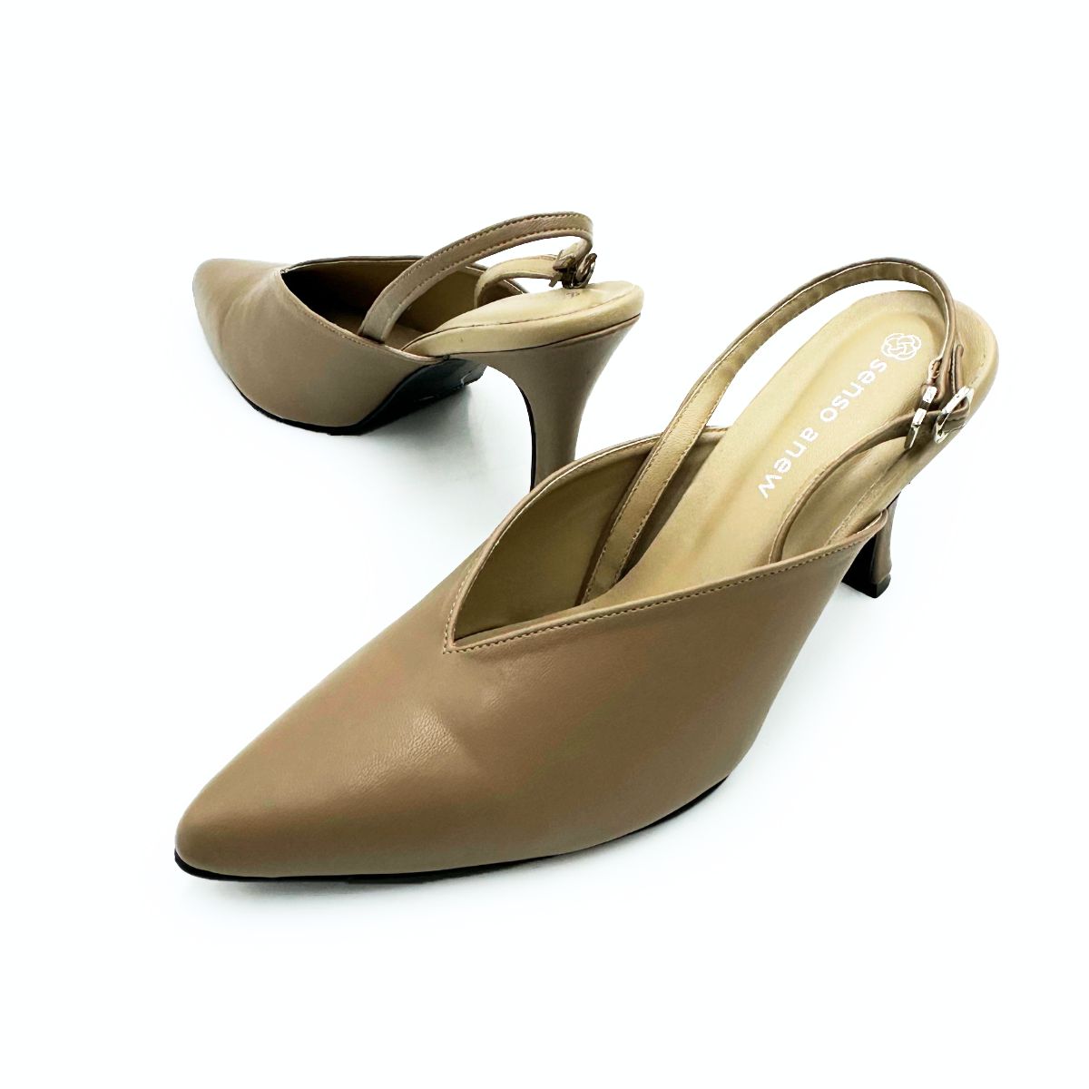 รองเท้าคัชชูเปิดส้นมีสายหลัง หนังPU ซับหนังPU สูง 3 นิ้ว