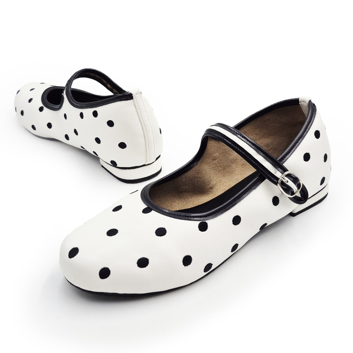 รองเท้าคัชชูลายจุด หนังPU ซับหนังPU สูง 0.5 นิ้ว