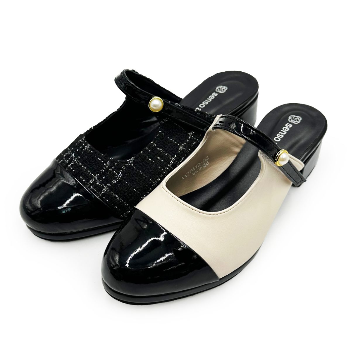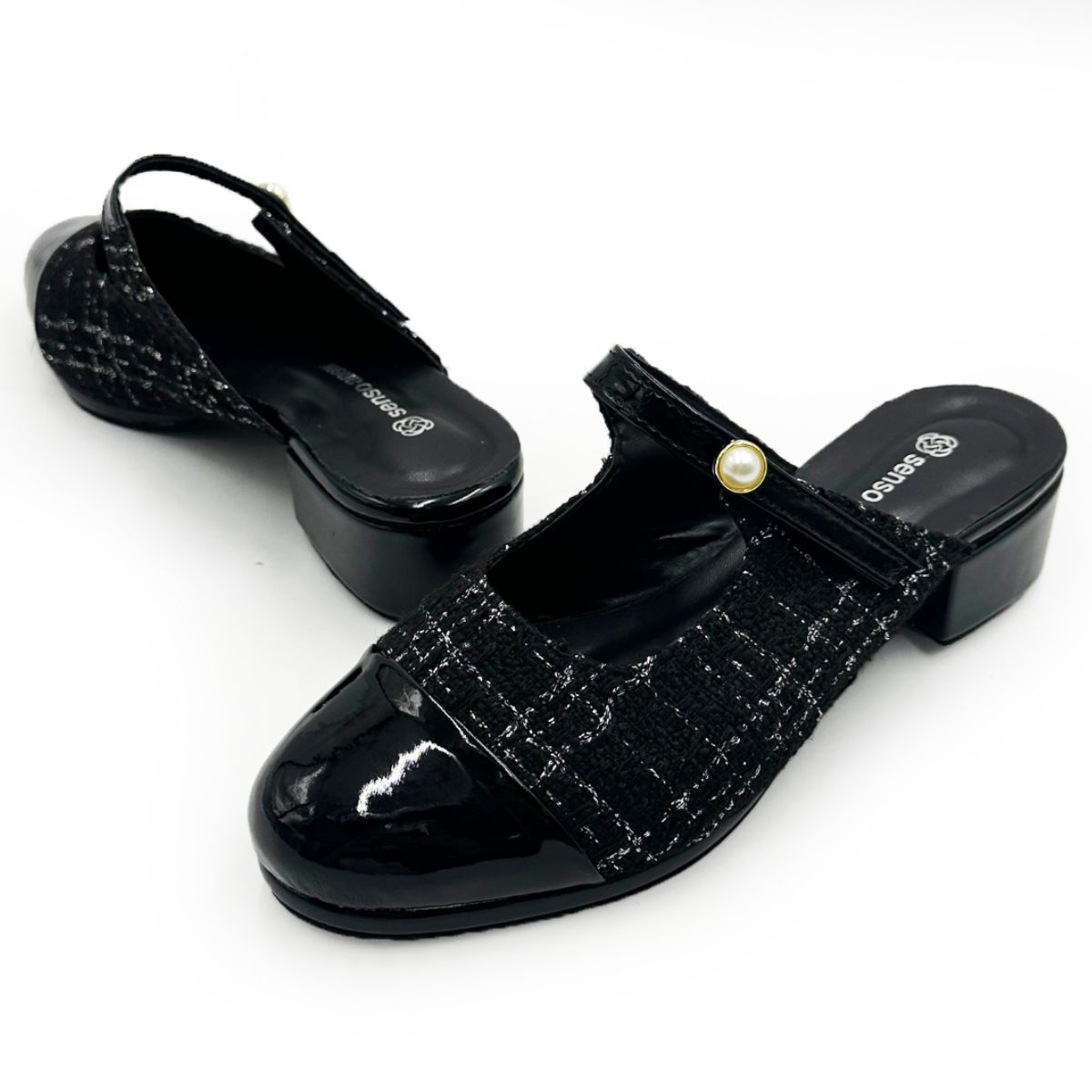 รองเท้าคัชชูเปิดส้น หนังPU ซับหนังPU สูง 1.5 นิ้ว